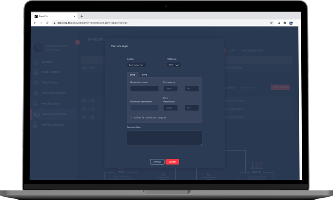 Dans la partie WAN vers LAN, cliquez sur « Créer une règle » puis sur « Activer la redirection de port ».
